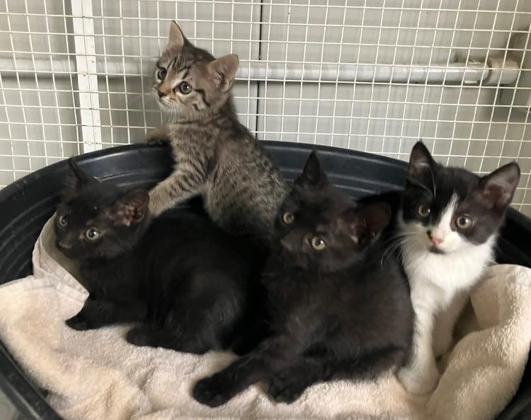 Altri piccoli lenocini…. Non si fermano gli ingressi in rifugio, loro sono gli ultimi 4 arrivati, 3 femminucce ed un maschietto (nero). Vorremo tanto trovare anche per loro una famiglia amorevole e premurosa.